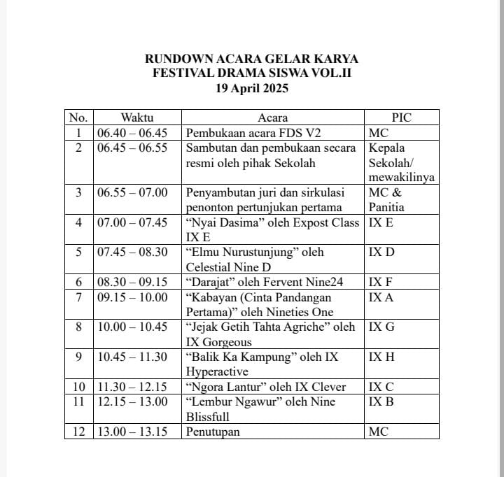 FESTIVAL DRAMA KELAS IX TAHUN AJARAN 2024-2025