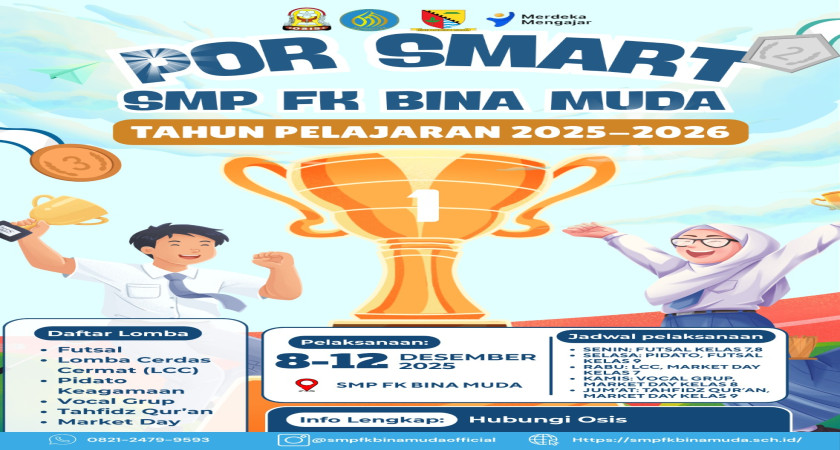 Dalam rangka silaturahmi antar kelas, maka SMP FK Bina Muda mengadakan ajang PORSMART antar siswa/i SMP FK Bina Muda. Kegiatan ini rutin dilaksanakan sesudah PSAS Semester 1 dan PSAT. Untuk Semester 1 ini diikuti oleh perwakilan masing-masing tiap kelas, baik itu kelas VII, VIII dan IX. Adapun jenis pertandingannya ialah :